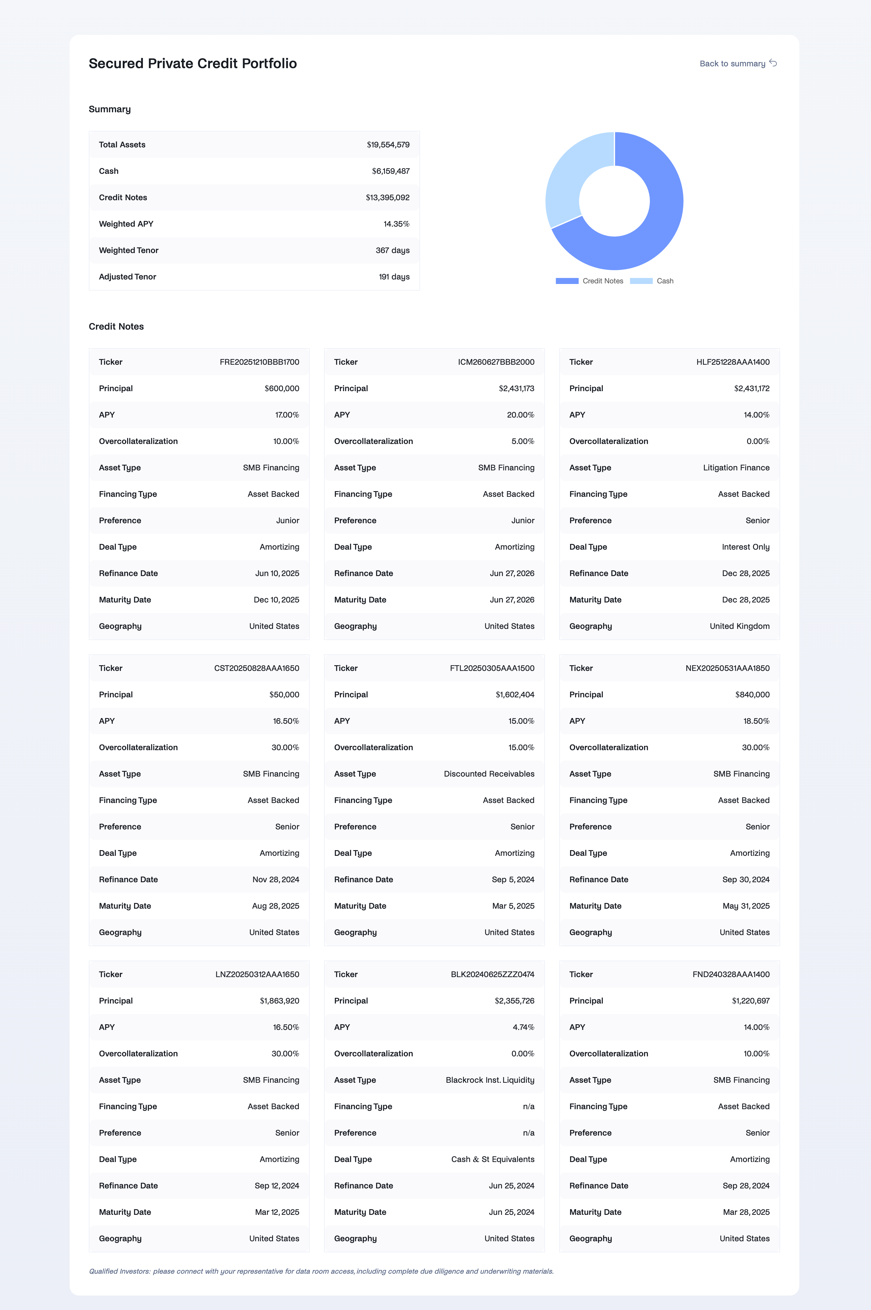 USDz is backed by a carefully selected, diversified portfolio of private credit assets, based on specific underwriting criteria and stringent portfolio risk controls.